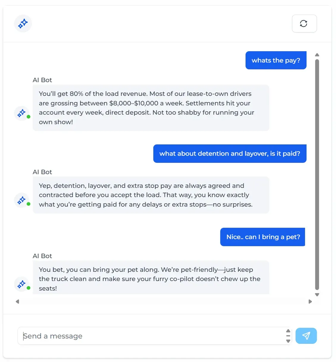 Through automated conversations, lead qualification, and real-time engagement, HireDrivers.ai helps recruiting teams capture more opportunities while reducing the operational burden of handling high volumes of driver inquiries.